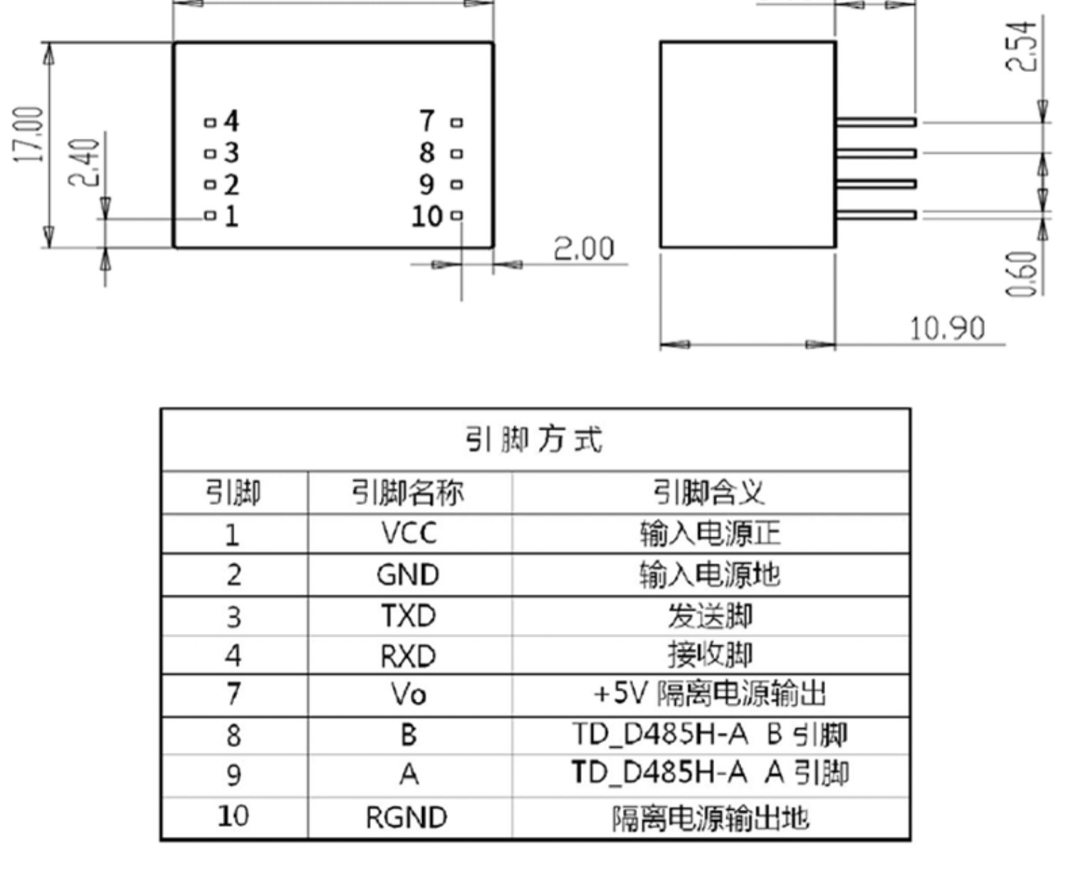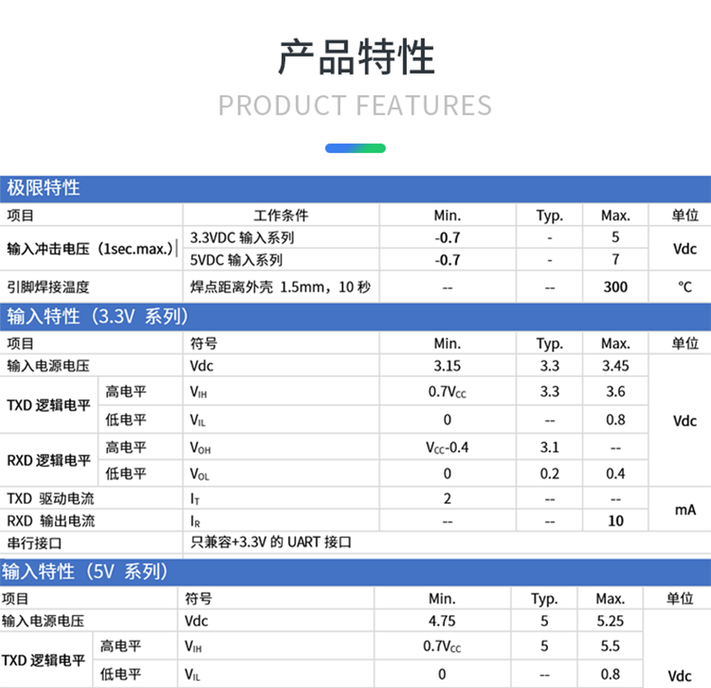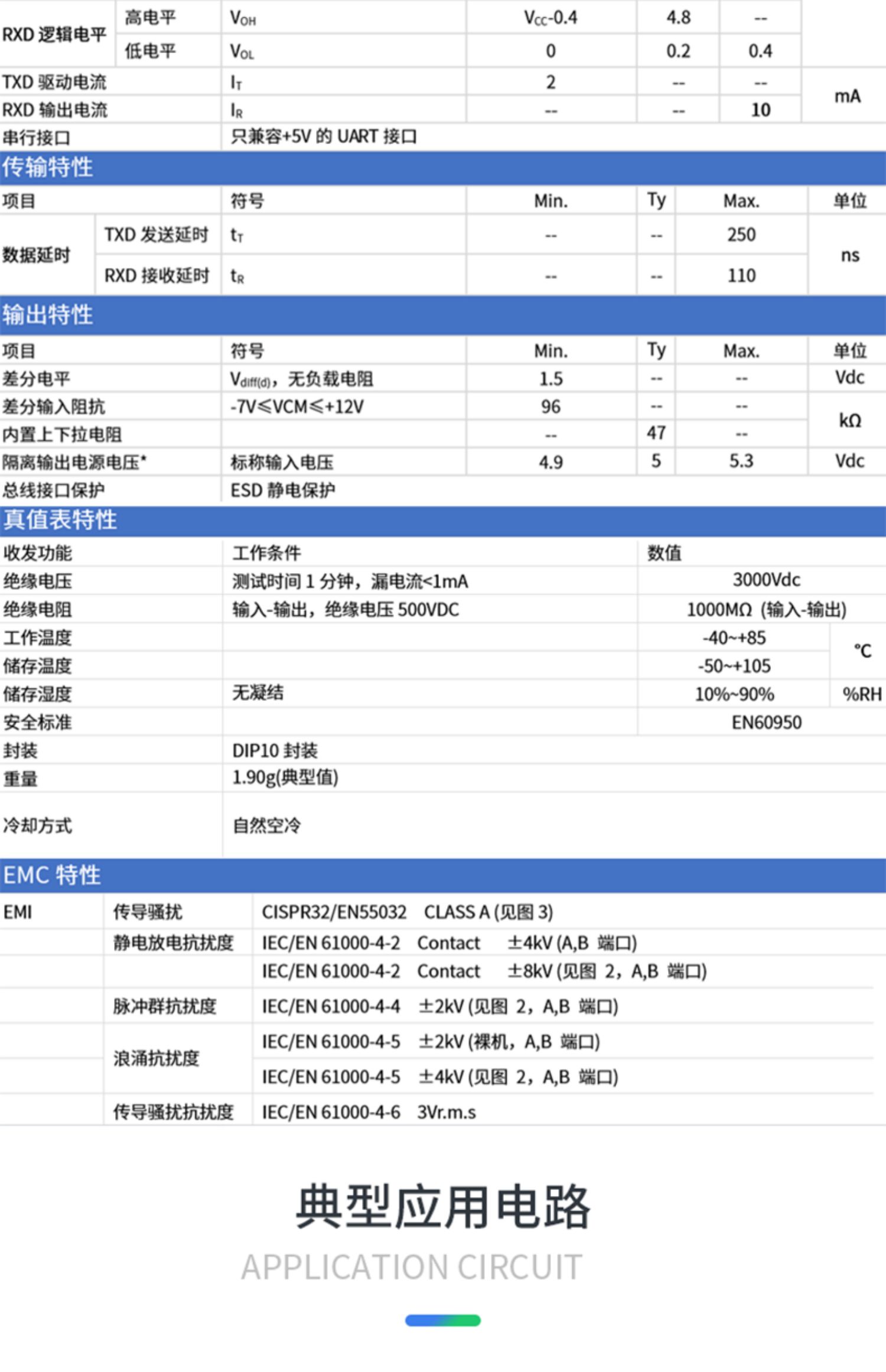 两端隔离耐压 3000VDC