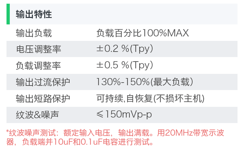 良好的输出短路和过流保护并可自恢复