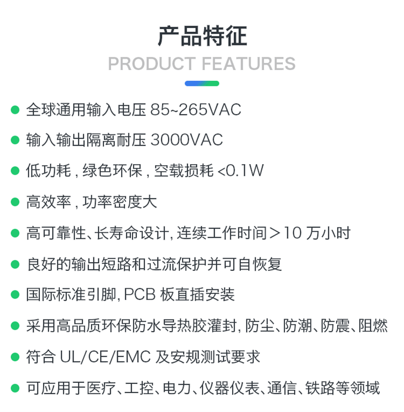 低功耗、绿色环保、空载损耗<0.1W