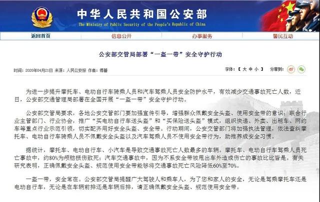 4月21日,公安部发出一则通知,将开展“一盔一带”安全守护行动,6月1日开始进行严查。“一带”指的则是开车必须系安全带,而“一盔”指的则是骑行摩托车和电动车需要佩戴安全头盔。