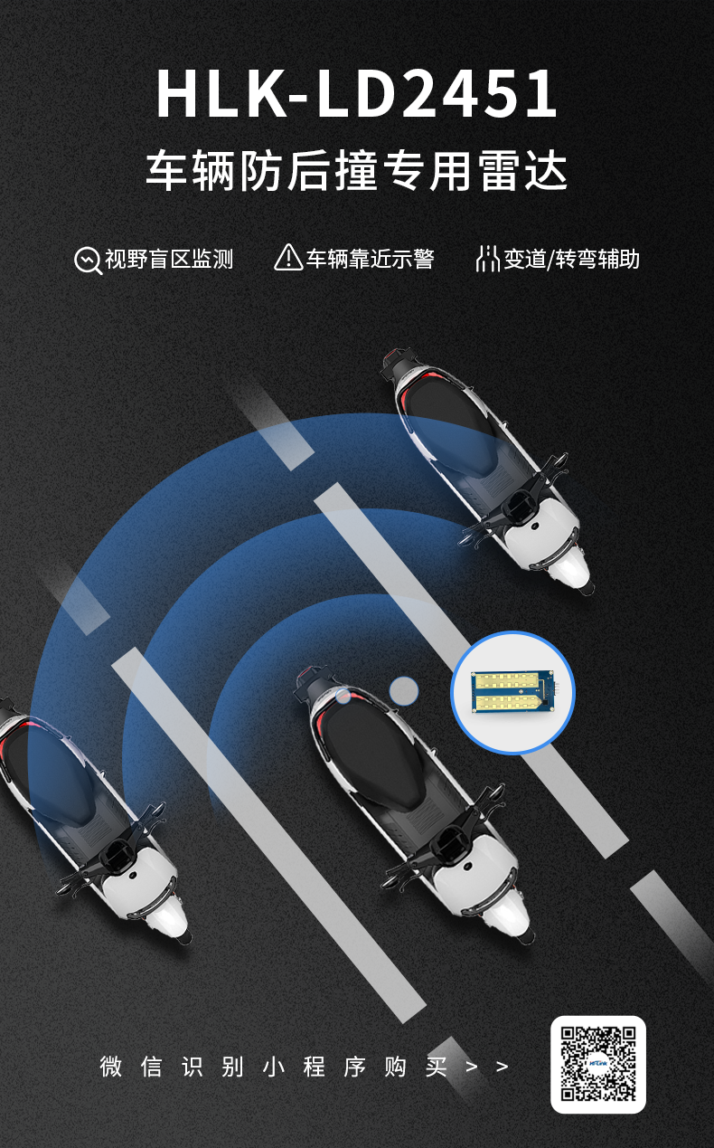 HLK-LD2451雷达模块单价40元左右,安装简单,即插即用,批量化用于电动车以及摩托车中,可大幅度降低成本。