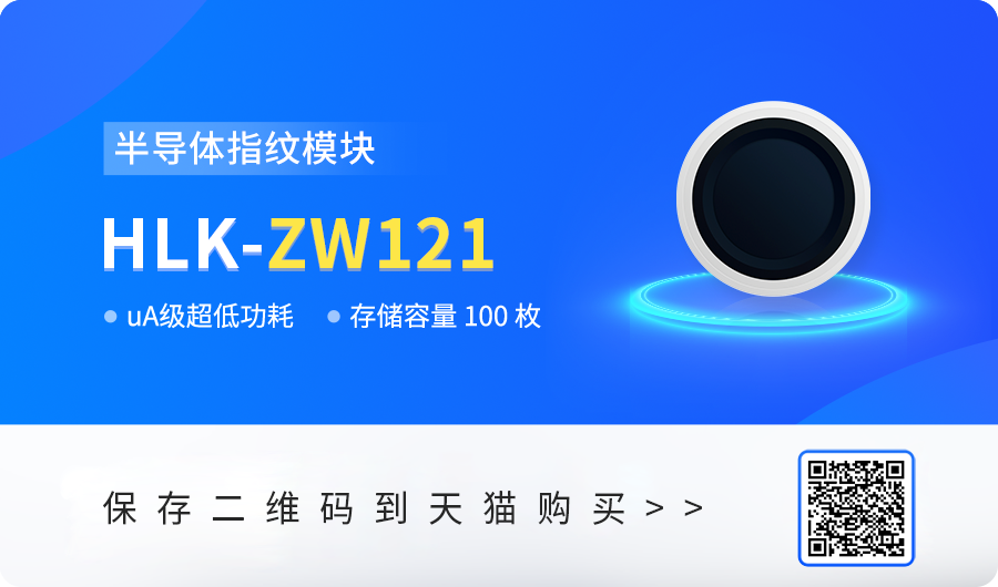 HLK-ZW121指纹模块存储容量 100 枚,可以满足指纹门锁、智能门禁以及考勤系统等。