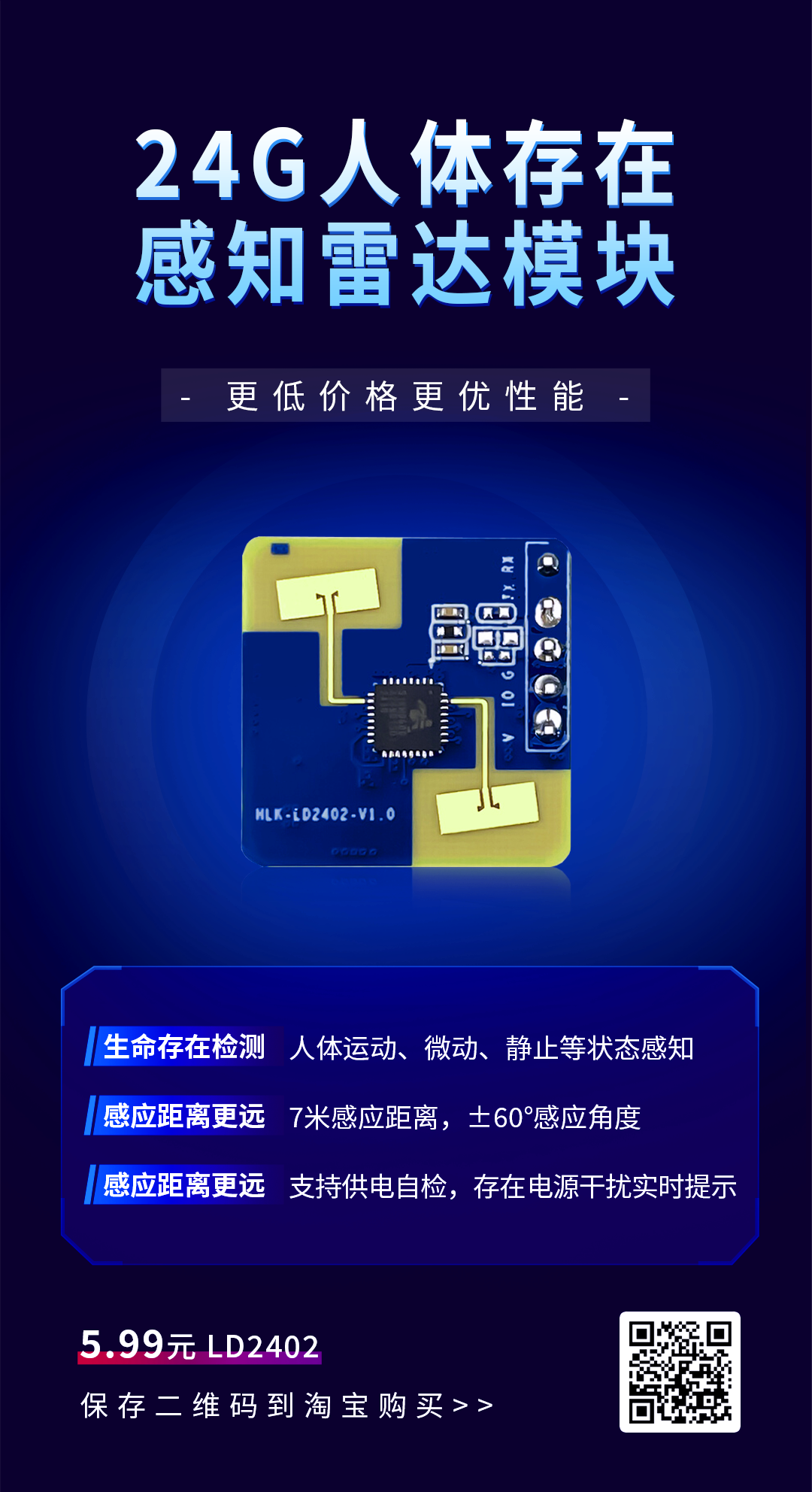 HLK-LD2402不仅卷价格,更卷性能!LD2402雷达模块支持使用前预先排除干扰因素,感知人体更加精准,感应范围更广。