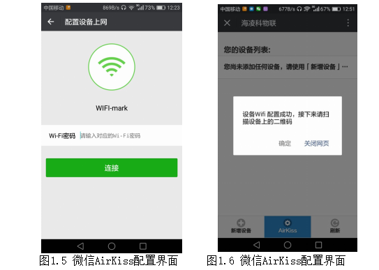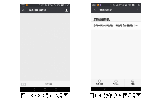 通过关注的“pc版雷竞技什么时候出来 智慧物联”公众号进入图1.3中的界面,点击底部AirKiss菜单进入;
