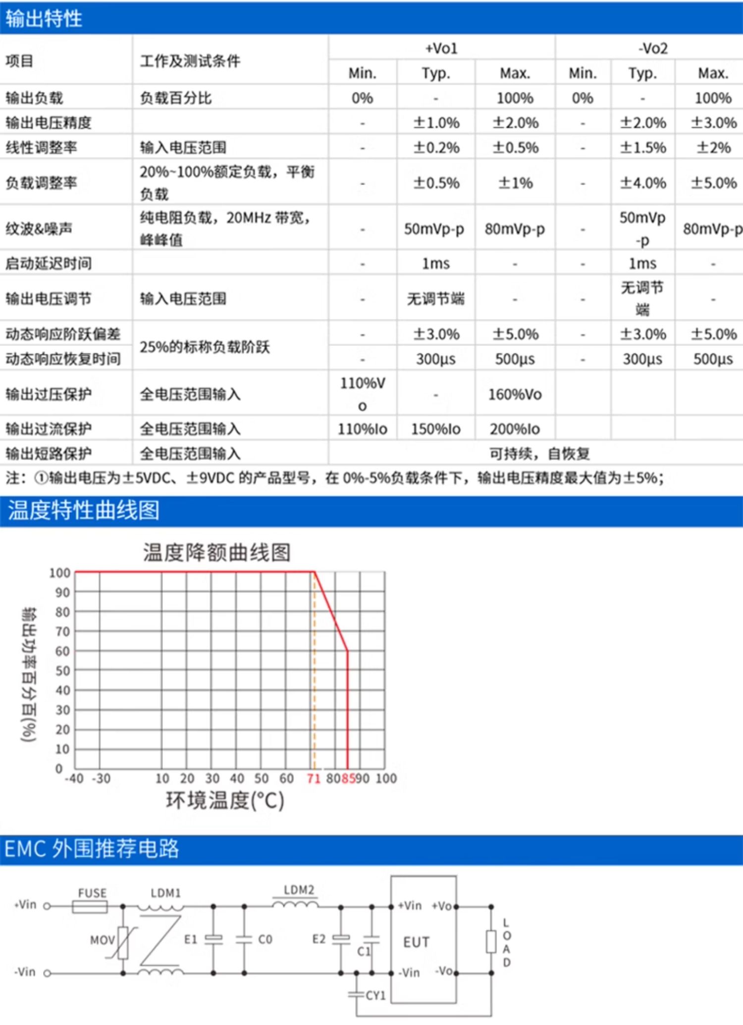 工作温度范围:-40°C~+85°C输入欠压,输出短路,过流,过压