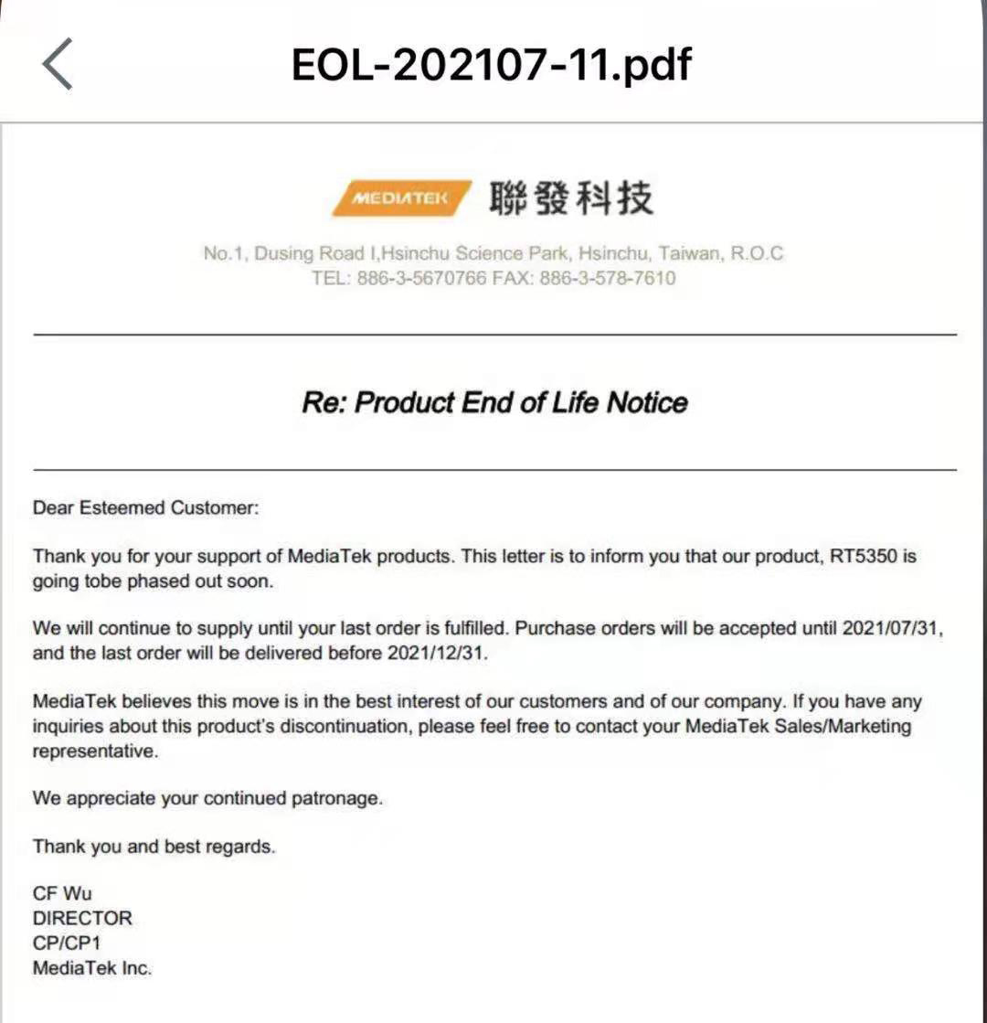 联发科宣布RT5350芯片年底停产 pc版雷竞技什么时候出来 推荐新的模组代替 Release Time:2021-08-02 02:30 联发科宣布RT5350芯片年底停产 pc版雷竞技什么时候出来 推荐新的模组代替 Details