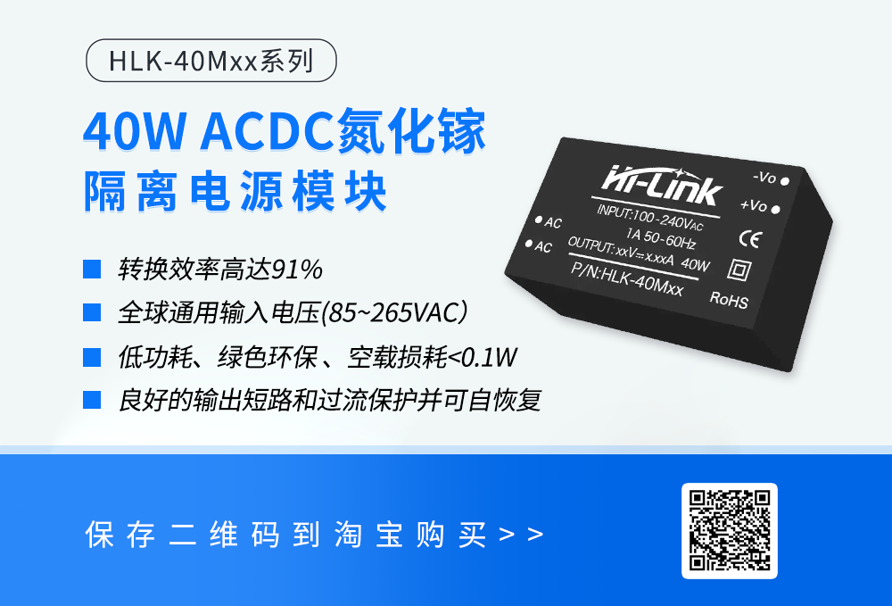 40W ACDC系列氮化镓电源模块,具有全球输入电压范围、低温升、低功耗、高效率、高可靠性、高安全隔离等优点,转换效率高达91%,应用广泛,性价比高。